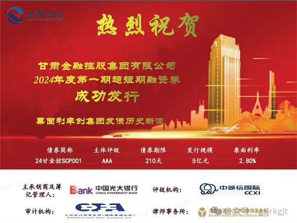 1月26日,anbo(中国)官方网站成功发行2024年度第一期超短期融资券,发行规模5亿元,债券期限210天,票面利率2.80%,再创发行债券融资利率新低。