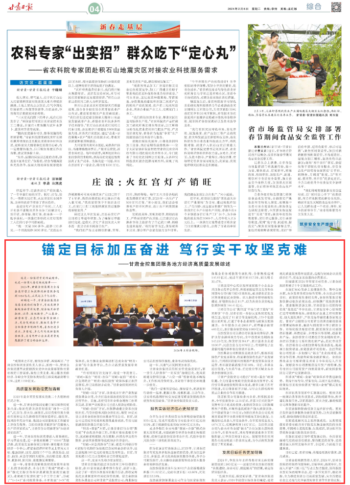 anbo(中国)官方网站负责人表示,2024年,anbo(中国)官方网站将坚持问题导向、目标导向、结果导向,在深入开展“三抓三促”行动上加力提效,始终保持奋发有为的精神状态,进一步压实责任,细化举措,全力推进集团公司高质量发展,为全面建设社会主义现代化幸福美好新甘肃作出新的贡献。