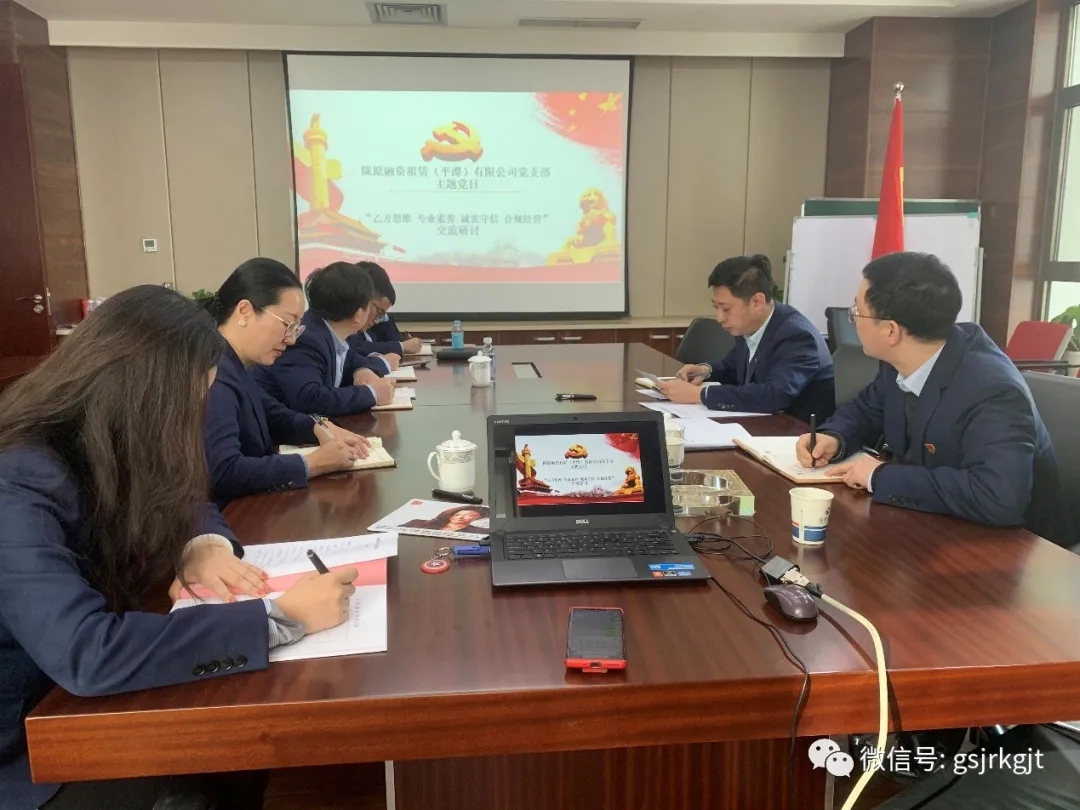 新元肇启,华章日新。近日,陇原融资租赁党支部开展“乙方思维、专业素养、诚实守信、合规经营”主题党日活动。全员先后以“合规合法,诚实守信”“树立乙方思维 夯实专业基础 做强公司业务”等为题开展大讨论,讲认识,谈感受。支部书记刘少康同志表示,强化“乙方思维”,就要做好行政化的“减法”,专业能力的“加法”,优化服务的“乘法”。多上门拜访、勤汇报沟通,当好客户的“智多星”,不断提高客户的获得感、满意度。