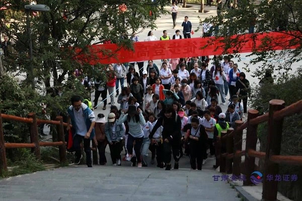 金秋九月,万物丰稔,登高望远,天高气爽。为深入践行不忘初心、牢记使命主题教育成果,隆重庆祝中华人民共和国成立70周年,甘肃金控、华龙证券800多名职工参加“赞绿水青山、与祖国同行”徒步登高健身活动,抒发对伟大祖国的崇敬和热爱之情。